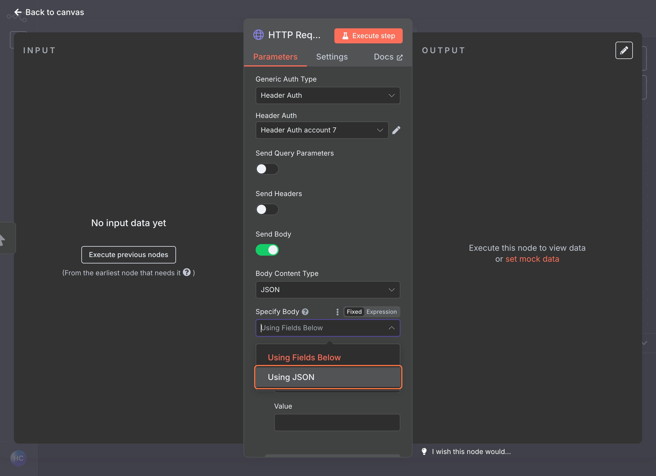 Use the same Header Auth credential created earlier